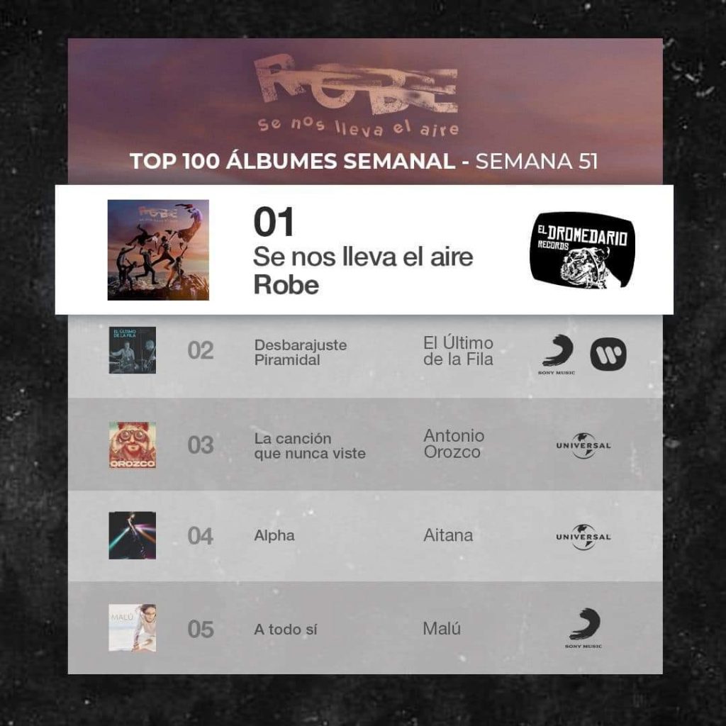 Los Robe logran el codiciado puesto número uno en las listas de ventas con su último álbum, «Se nos lleva el aire» en la primera semana de su lanzamiento. El público ha respondido de manera abrumadora, destacando la continua relevancia y la calidad artística que caracteriza la carrera del artista, ratificando así lo que ya había transmitido la prensa especializada sobre el disco.